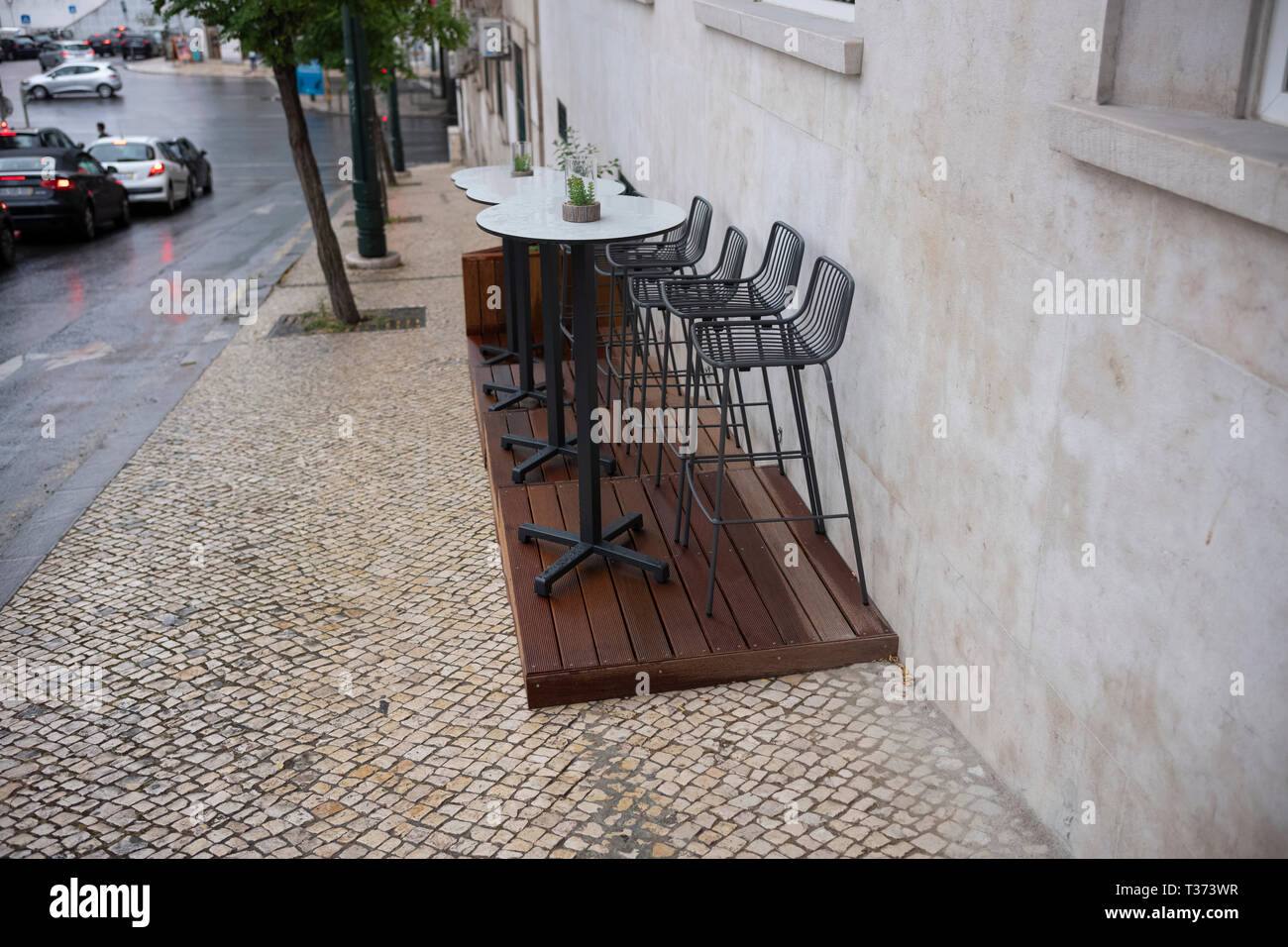 Outdoor seating at a cafe in Lisbon, Portugal Stock Photo Alamy