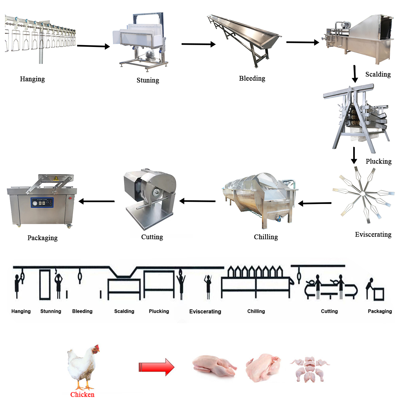 Chicken Slaughter Process this publication explains the poultry slaughter process step by step and some of the factors that affect final carcass quality. Whole or individual parts of birds may be packaged raw for direct sale. Figure 1 presents a flow diagram of a red meat slaughterhouse. This guide also covers equipment. This is done to ensure the birds are not subjected. Chicken Slaughter Process.