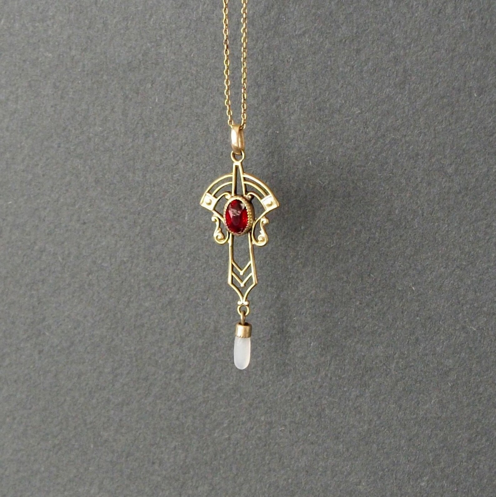 Antique Victorian Lavalier Necklace . Ruby Red Stone . Gold . Etsy