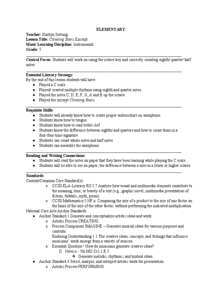 Saxophone Lesson Plan PDF Individualized Education Program Teachers
