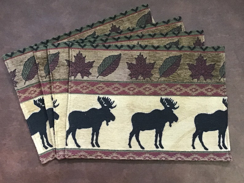 Tapestry placemats 46 per set. Rustic cabin decor Moose Etsy