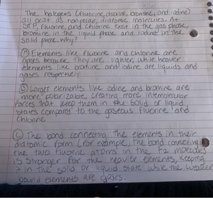 Solved The halogens Cfluorine, chlorine, bromine, and