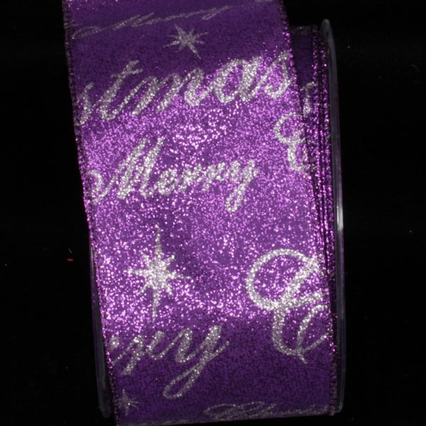 Purple and Silver Merry Christmas Wired Craft Ribbon 2.5" x 20 Yards