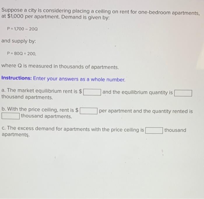 Solved Suppose a city is considering placing a ceiling on Can I Afford A 1000 Apartment Based on your £30,000 annual income, the maximum rent you can afford is £1,000 monthly. calculate how much renting a home will cost you, including bills, council tax and upfront damage deposits. rent affordability calculator showing what you can afford in the uk based on your income. how much you’ll spend on rent can vary, depending on. Can I Afford A 1000 Apartment.