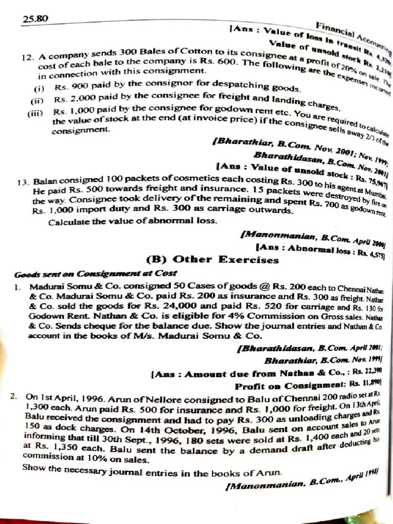 Consignment Exercises PDF Expense Insurance