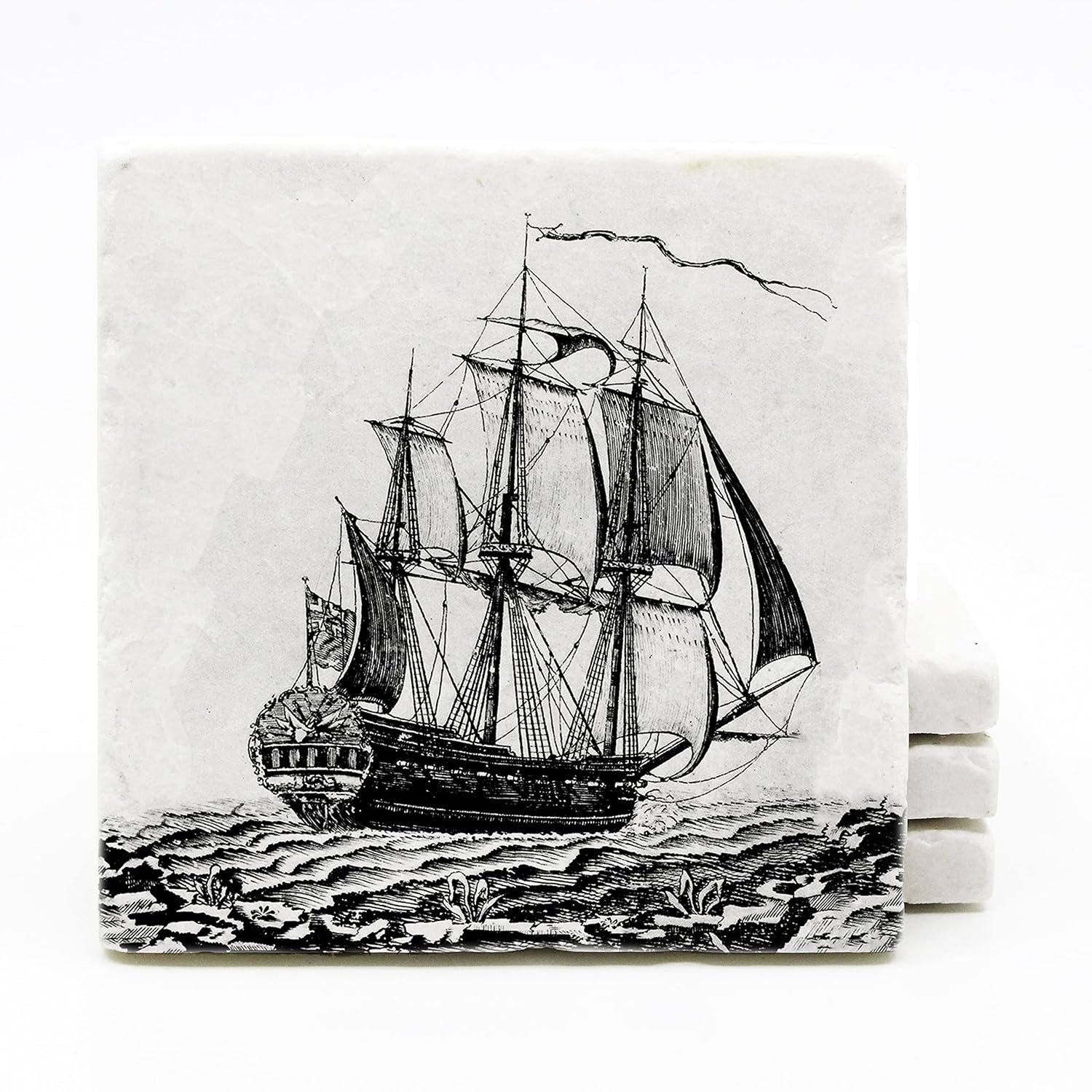 Nautical Marble Coasters Handmade Boat Marble Tile Drink