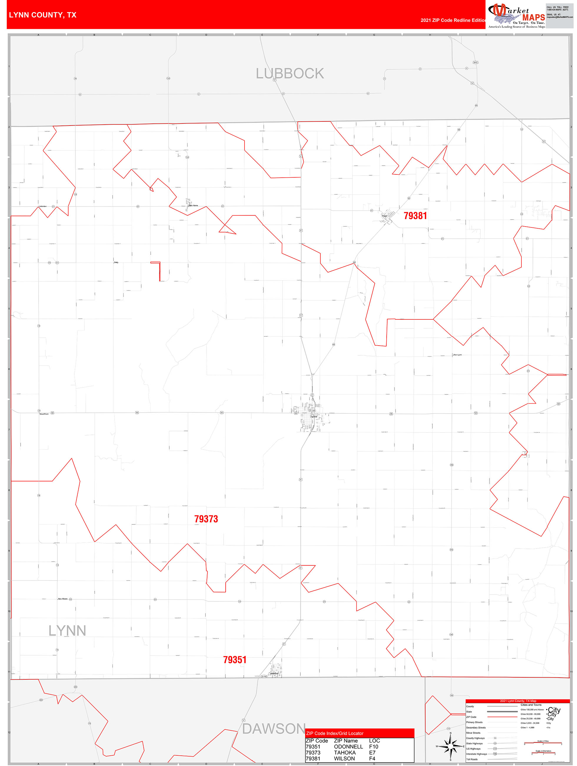 Lynn County, TX Zip Code Wall Map Red Line Style by MarketMAPS MapSales
