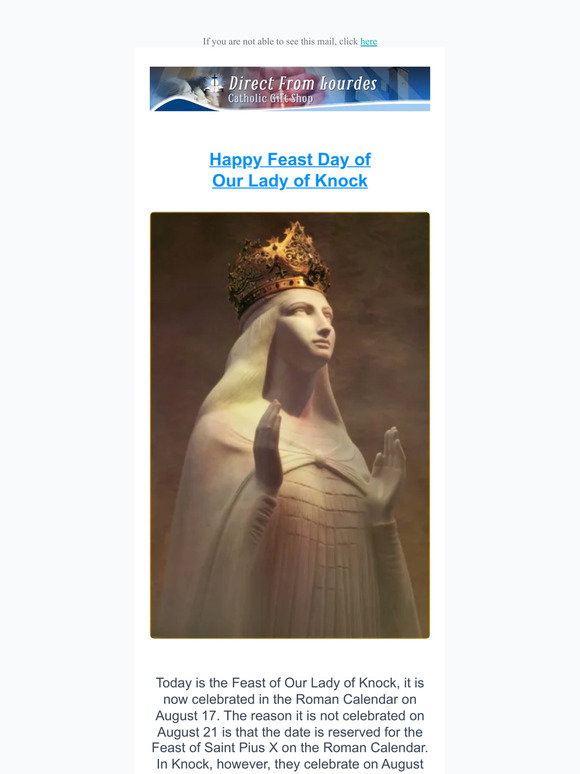 direct from lourdes Feast Prayer Our Lady of Knock Milled