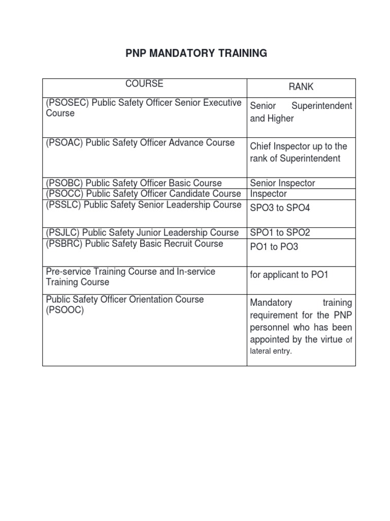 PNP MANDATORY TRAINING.docx What Is The Purpose Of Mandatory Training Mandatory training is essential training required by law, regulation, or. the main purpose of mandatory training is to guarantee that newly onboarded employees have the necessary expertise and understanding to effectively carry out their responsibilities. What is mandatory training for. employee training can help improve company culture, increase productivity, and support. the importance of training lies in. What Is The Purpose Of Mandatory Training.