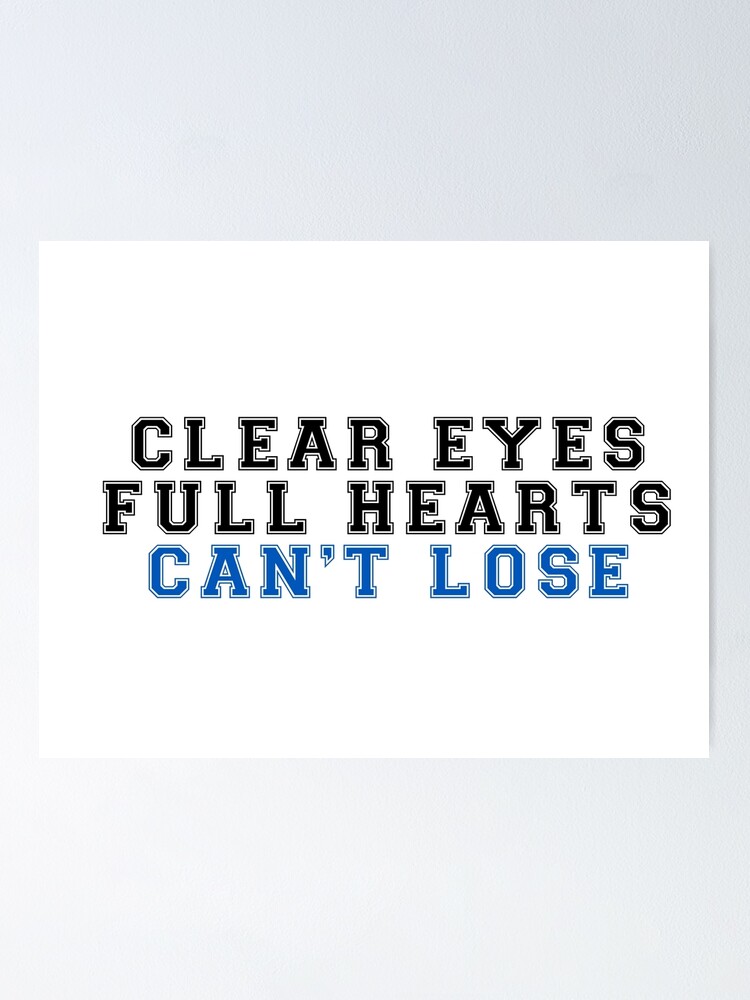 "Friday Night Lights "Clear Eyes, Full Hearts, Can't Lose" Quote Clear Eyes Full Heart Can't Lose It's real simple / you got two more quarters and that's it / and most of you have been playing this game for ten years / you got. Clear eyes, full heart (can't lose) lyrics: When did you know that that was a thing? We need to be full of the love of christ in order to share that love. Clear Eyes Full Heart Can't Lose.