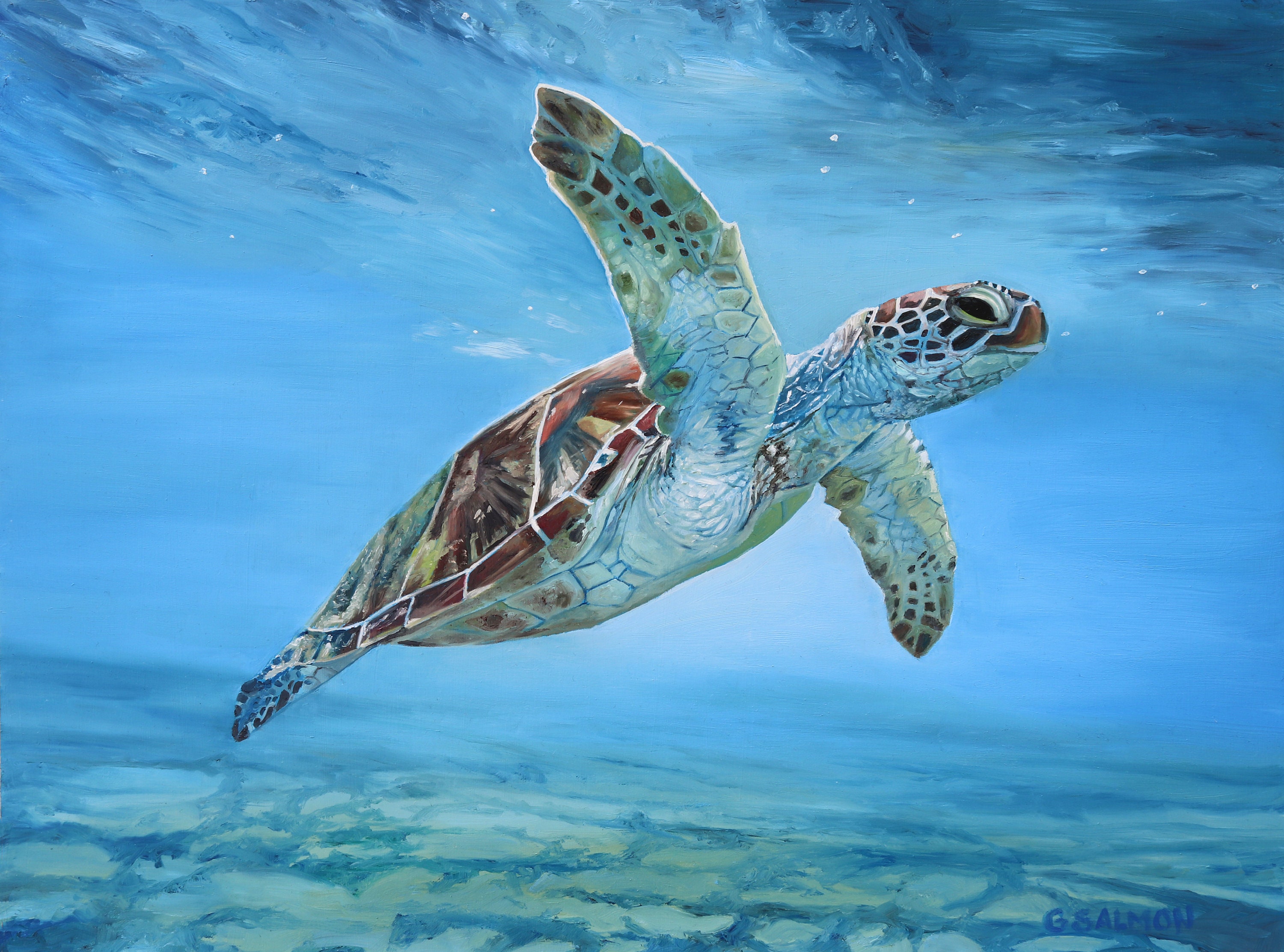 Painting "Green Sea Turtle" (Original art by Sea Turtle Painting Green All green sea turtles paintings ship within 48. some of the sea turtle species in our collection include the green, leatherback, loggerhead and kemp's ridley. choose your favorite green sea turtles paintings from 1,308 available designs. On average they weigh 400 lbs (180 kg). All green sea turtle paintings ship within 48. — green sea turtles are. Sea Turtle Painting Green.