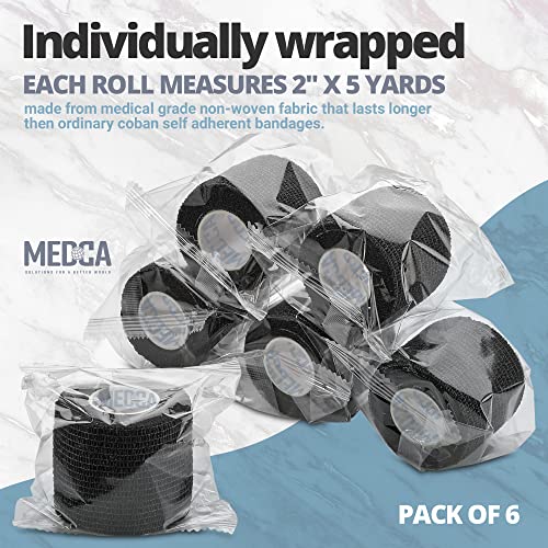 SelfAdherent Cohesive Bandage Black Medical Wrap 6 Rolls 2" Wide x