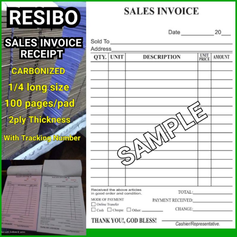 Resibo (Receipt Paper) 1/4 LONG Size (100 Pages / Pad) SalesInvoice