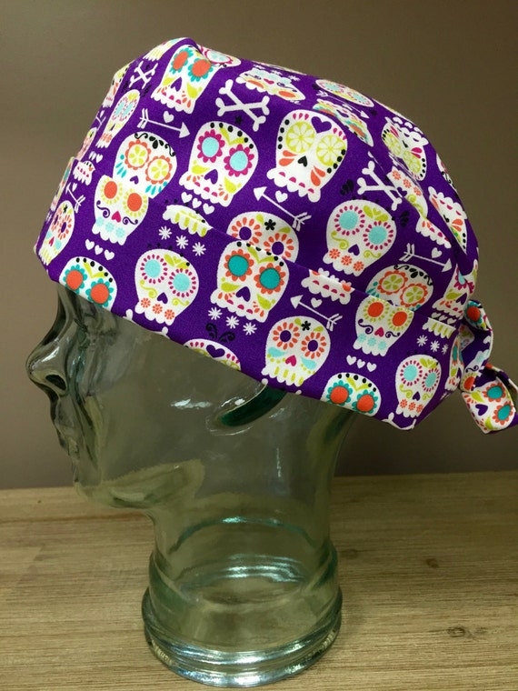 Custom Caps Company Purple Candy Skull Scrub Cap Women's