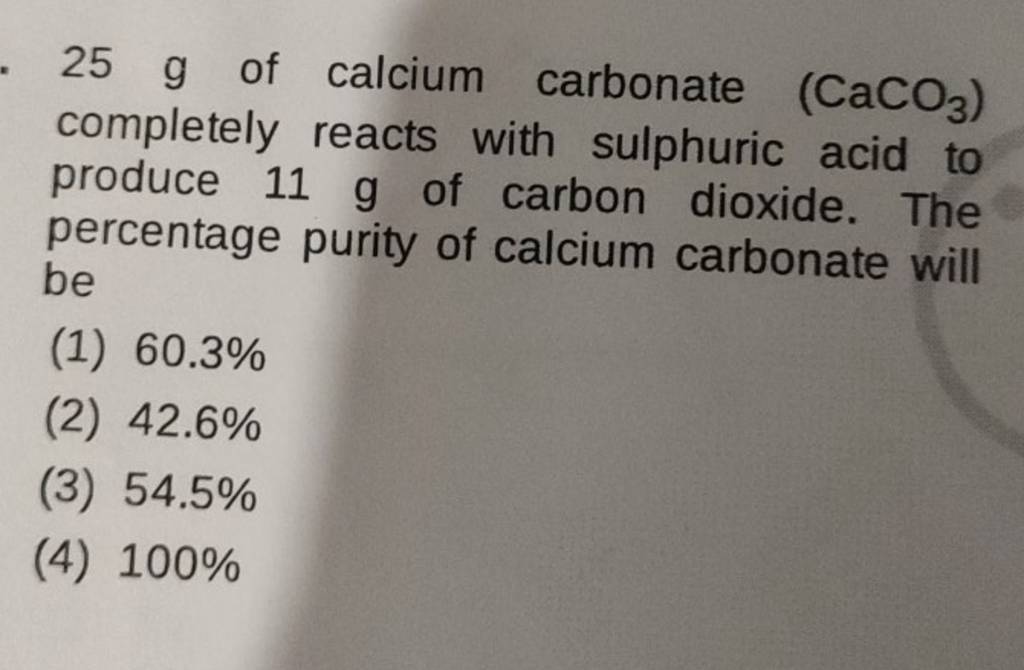25 g of calcium carbonate (CaCO3 ) completely reacts with sulphuric acid