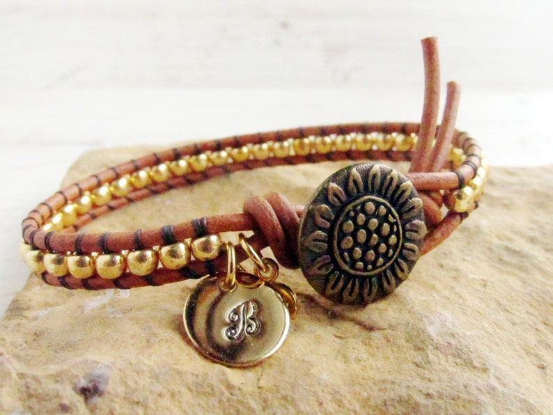 Sunflower Triple Wrap Bracelet Gold Initial Charm Bracelet Etsy Sunflower Gold Bracelet Made in italy, this delightful bracelet is as beautiful as a sunshiny day! Elfront 14k real solid gold sunflower bracelet adjustable sun flower bracelets jewelry gifts for women girls, christmas gifts. Dainty sunflower charm for bracelet earring necklace, 18k gold filled sun flower charm for summer garden inspired, 23x18mm cp1557. Dainty gold sunflower bracelet, gift for best friend, simple everyday. Sunflower Gold Bracelet.