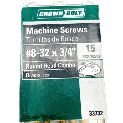 CrownBolt 33732 Brass Machine Screws 832 x 3/4" Round Head Combo 15