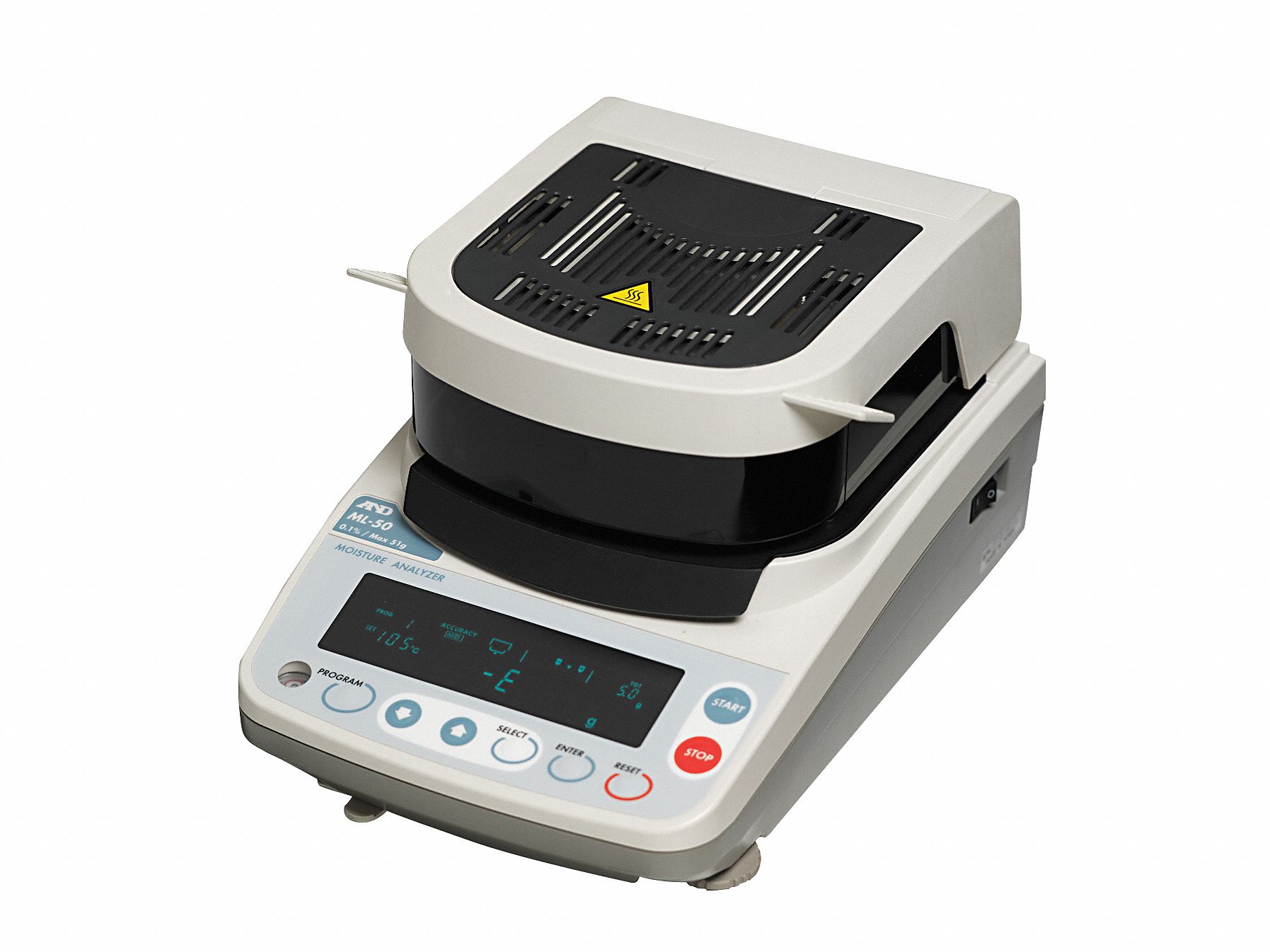 A&D WEIGHING Moisture Analyzer, Max. Capacity 51 g, 50° to 200°C, 0