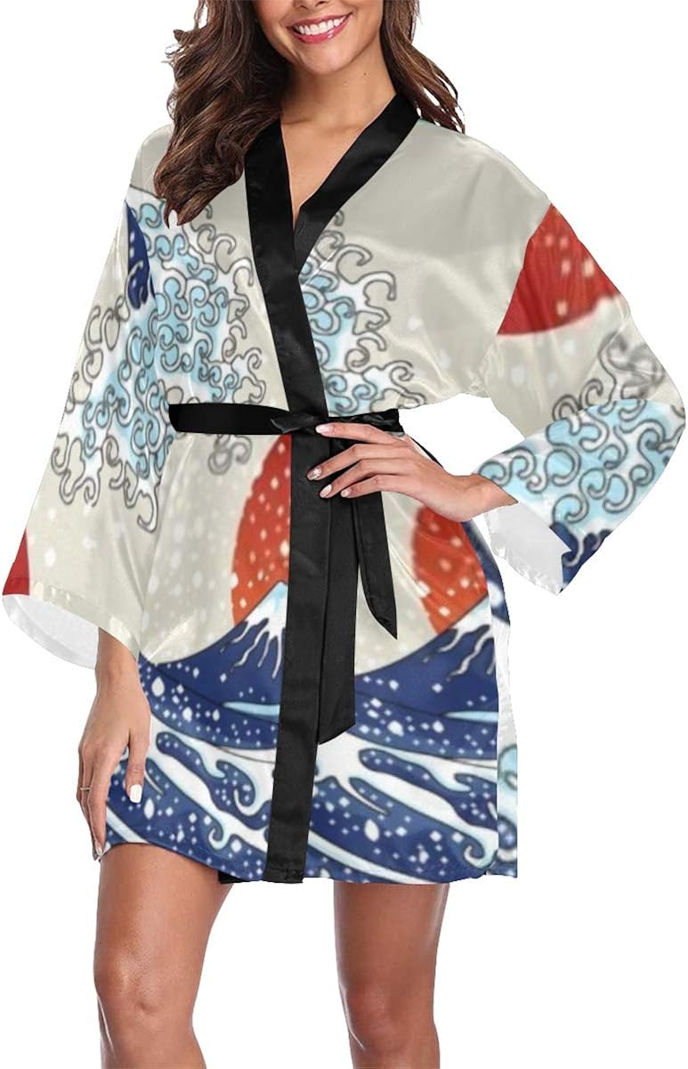 Womens Robe Ancient Great Japanese Wave Lightweight Kimono Robes Robe