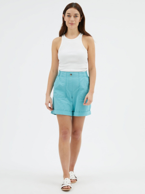 Aqua Blue Knee Length Cotton Shorts Women at ASDA