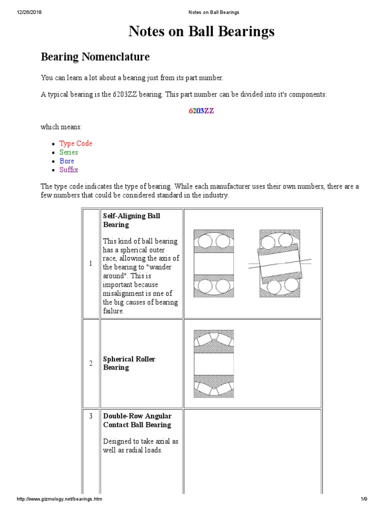 Notes On Ball Bearings Bearing Nomenclature PDF Bearing