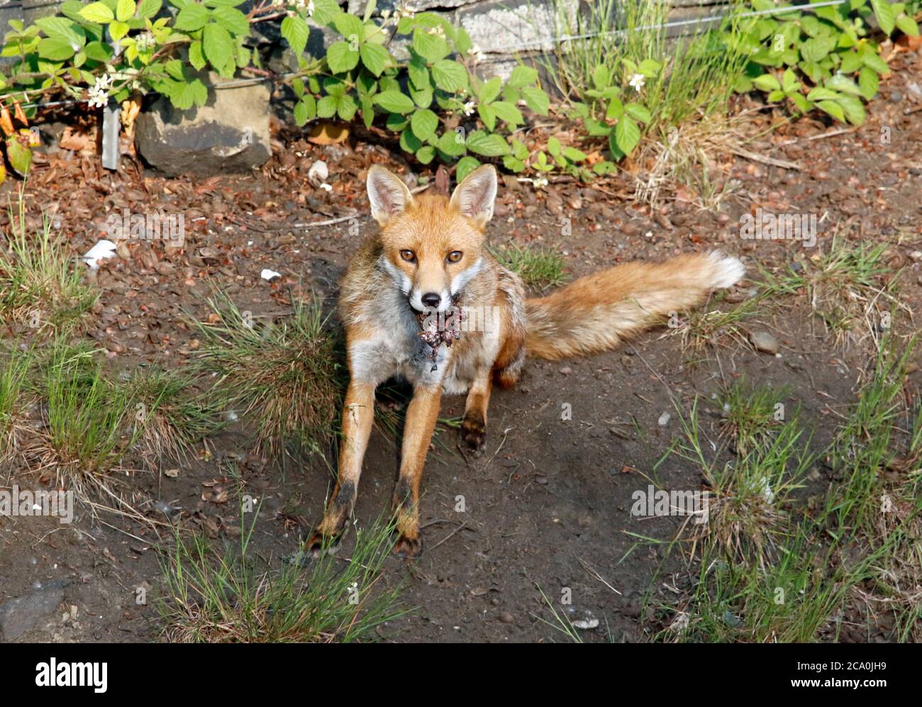 Male dog fox with food for the cubs Stock Photo Alamy