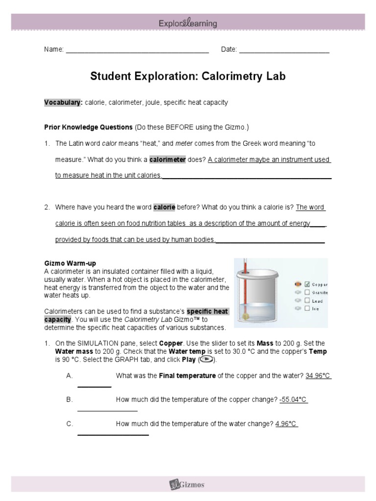 Calorimetry Lab SE PDF Calorie Heat Capacity