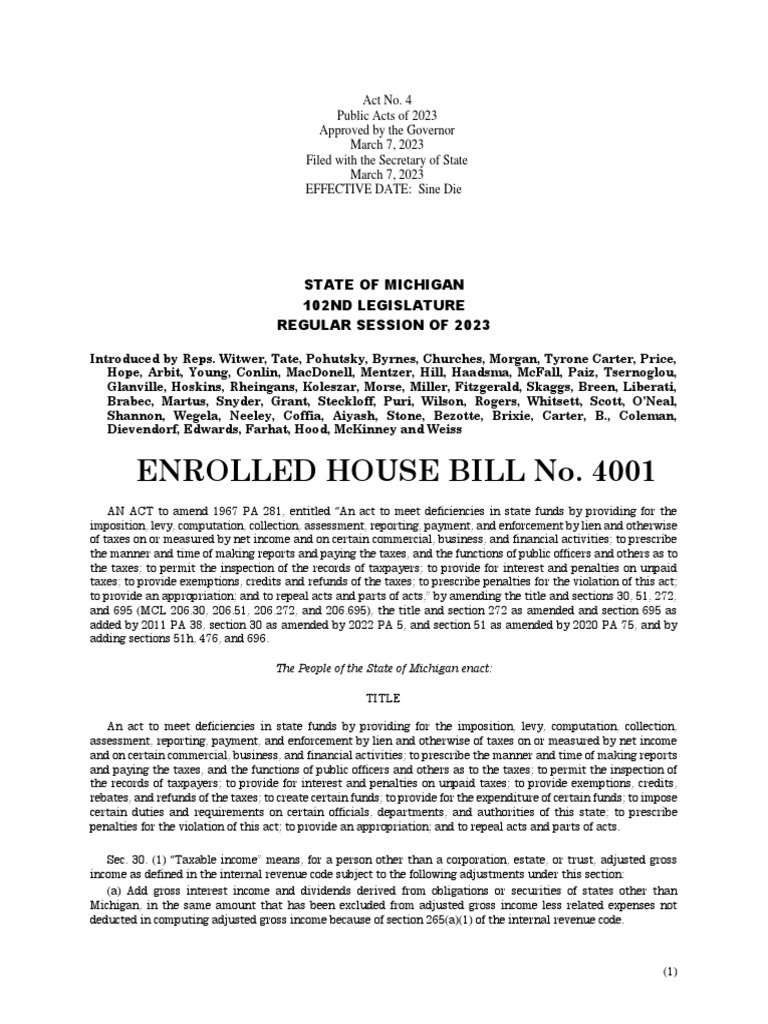 House Bill No. 4001 PDF Tax Deduction Gross