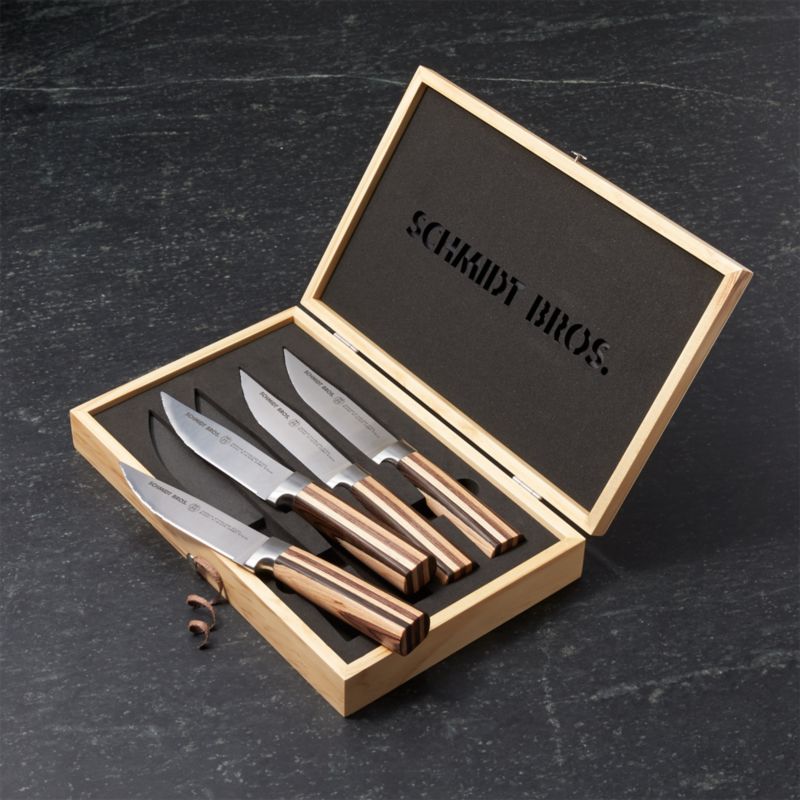 Schmidt Bros. Jumbo Steak Knife Set Uncrate Best Jumbo Steak Knives To find the best steak knives, we put 16 different steak knives to the test in the good housekeeping institute kitchen appliances lab,. Material table knives at materialkitchen.com $90. The schmidt brothers bonded ash jumbo steak s/4 has reinvigorated my love for a good steak knife. With amazing comfort and ergonomic design, a split double bevel. The schmidt brothers zebra. Best Jumbo Steak Knives.