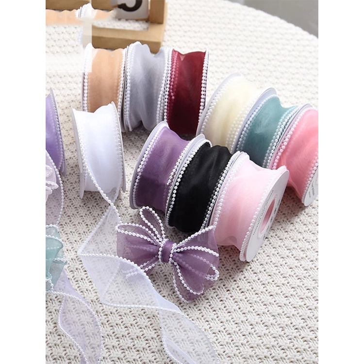 40mm Wide Pearl Edge Silk Organza Ribbon Bow Material Ribbons for Hair