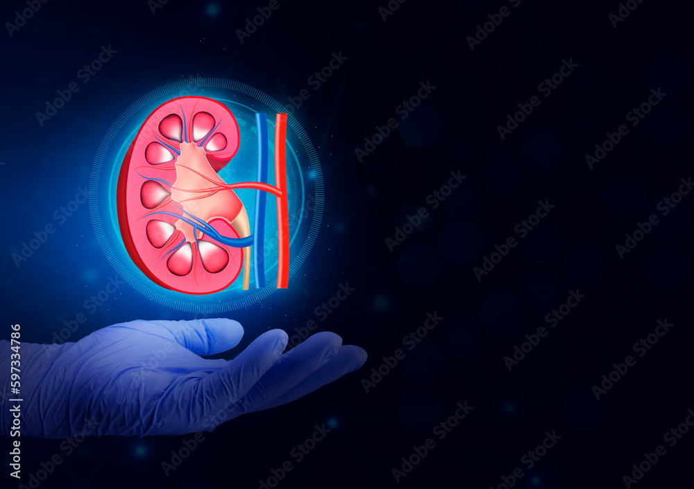 Nephrology, medical care for kidney problems. Kidneys isolated on light