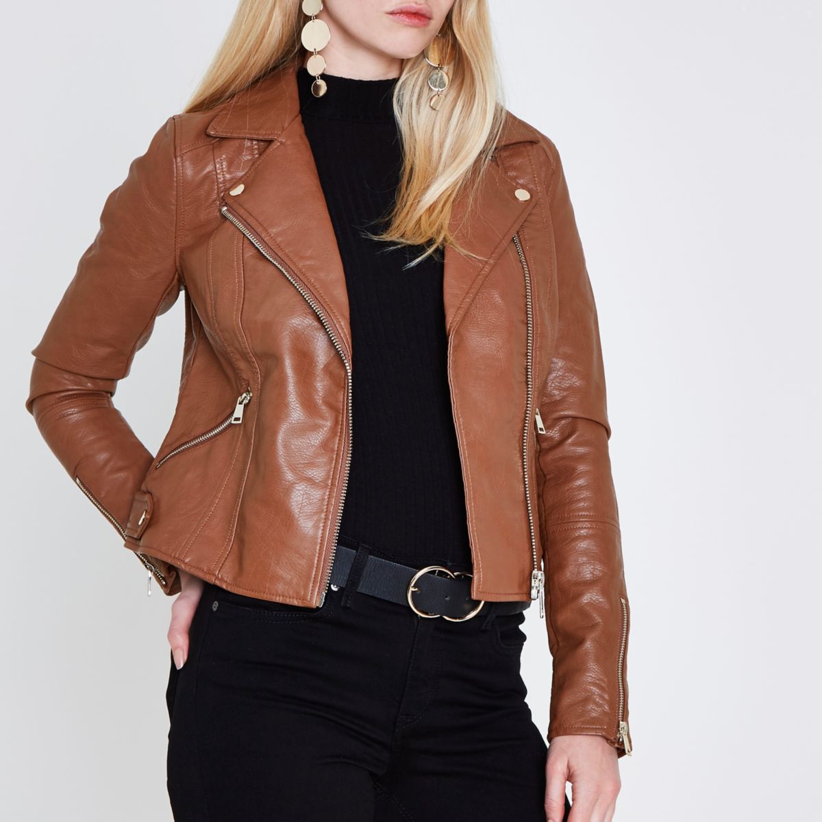 Tan faux leather biker jacket Coats & Jackets Sale women