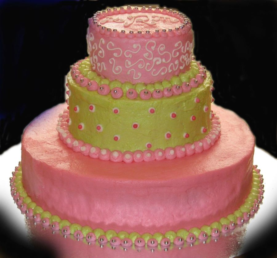 Pink And Green Birthday Cake With Monogram