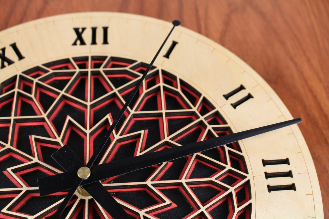 Intricate Star Clock Wooden Clock Stained Wall Clock Laser Etsy