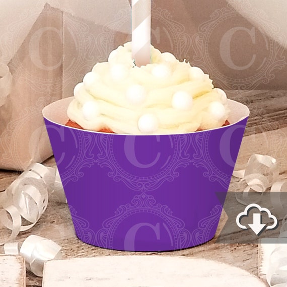 Purple Cupcake Wrappers, Solid Print, PDF Printables, DIY Party