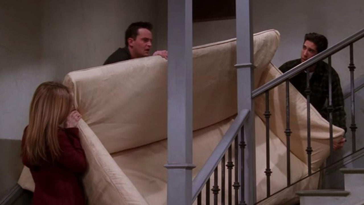 Friends Ross Couch / 'Friends' 25th Anniversary PopUp Coming To Boston CBS It works Couch Friends Ross In the “pivot” episode of “friends,” ross buys a new couch and decides to carry it up to his apartment—and it goes terribly wrong. With jennifer aniston, courteney cox, lisa kudrow, matt leblanc. Find out how experts suggest ross should have done it the right way, plus tips and tricks if you ever decide to try carrying a couch up. Couch Friends Ross.