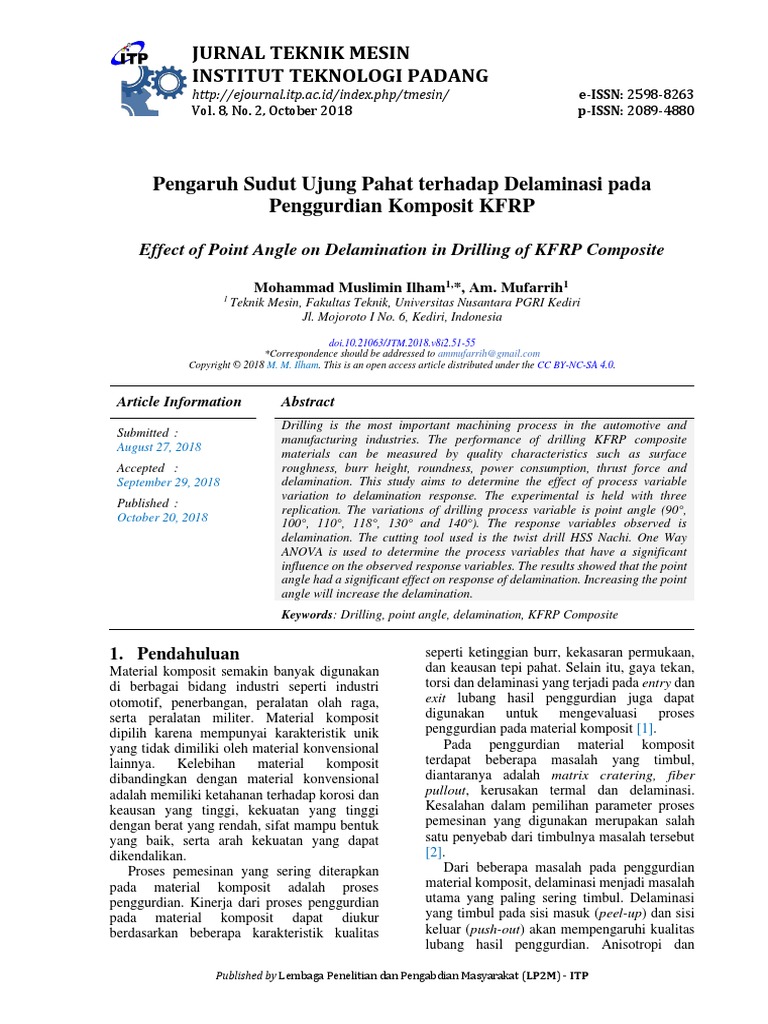 Jurnal Teknik Mesin Institut Teknologi Padang Effect of Point Angle On Delamination in Drilling Jurnal Teknik Mesin Itb Mesin merupakan jurnal nasional, yang di dalamnya mencakup ilmu dan aplikasi teknik mesin, teknik dirgantara, teknik material, dan. Jurnal teknik sipil is a scientific journal published periodically every three months on april, august and december. Journal of engineering and technological sciences welcomes full research articles in: Mesin merupakan jurnal teknik mesin nasional, termasuk di dalamnya ilmu dan aplikasi teknik mesin,. Jurnal Teknik Mesin Itb.