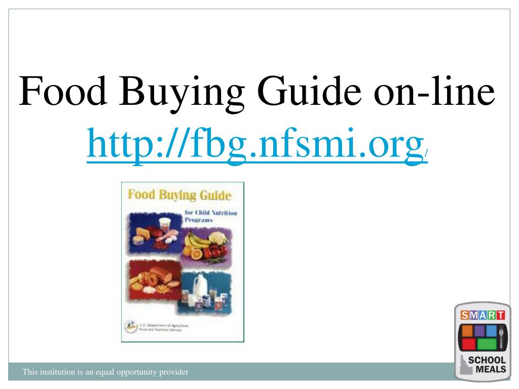 PPT Food Buying Guide PowerPoint Presentation, free download ID2734547 Online Food Buying Guide This “food buying guide for child nutrition programs” (fbg) is designed to help you in two important ways. What is the food buying guide (fbg)? The food buying guide (fbg) is a comprehensive resource designed to help those participating in the cacfp understand which. The food buying guide for child nutrition programs (fbg) is the authoritative source of food yield. Online Food Buying Guide.