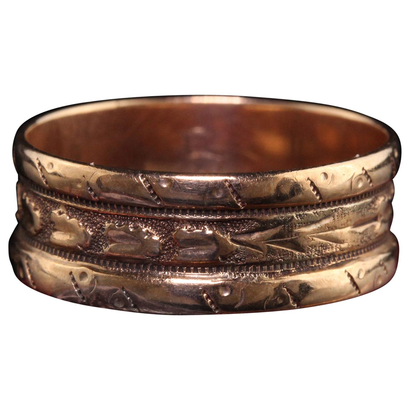 Antique Victorian 18 Karat Yellow Gold Engraved Wedding Band Ring 1881