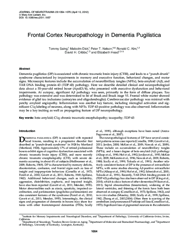 (PDF) Frontal Cortex Neuropathology in Dementia Pugilistica Malcolm