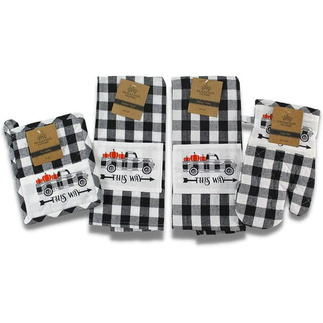 Serafina Home Farmhouse Black and White Check Kitchen Towel Set, 4