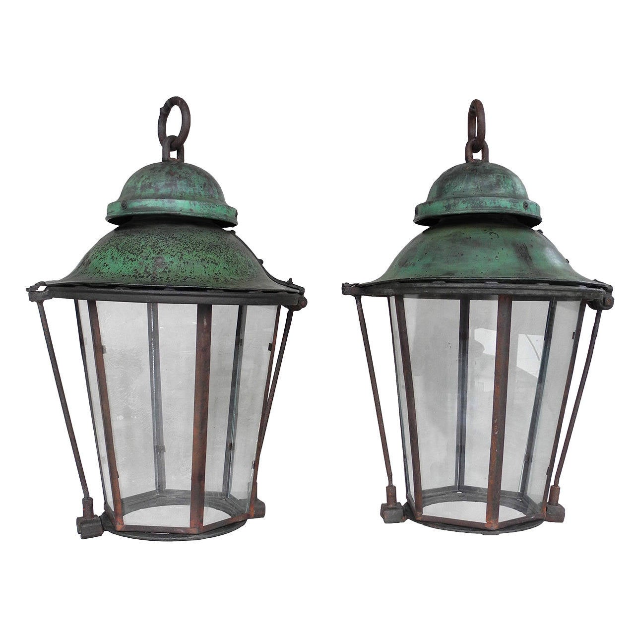 Pair of 19th Century Green Lanterns For Sale at 1stdibs