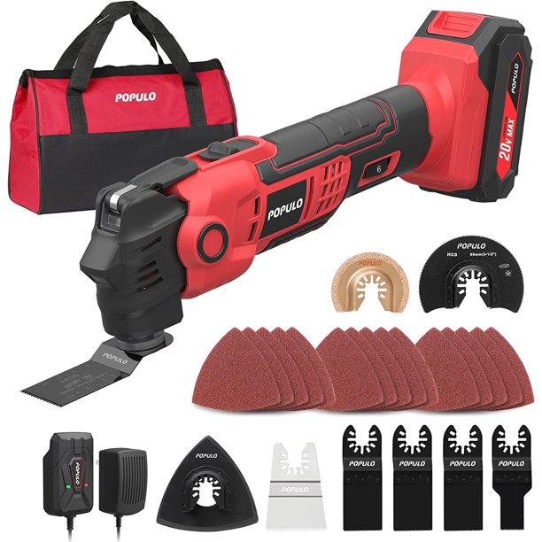 POPULO 20V Cordless Oscillating Tool Kits, 22000 OPM Variable Speed, 4.