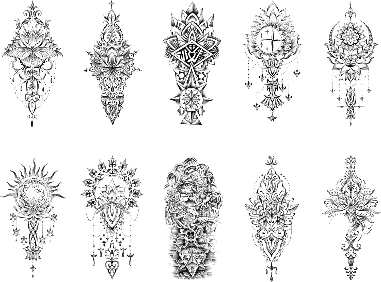 JSHEN 10 Sheets Realistic Temporary Tattoos 3D Flower Lotus Pattern 11