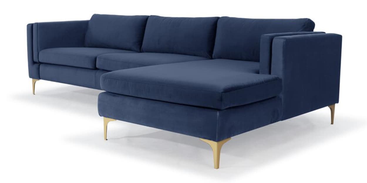 Buy Lima Fabric LHS Sectional Sofa in Navy Blue Colour by Adorn Homez
