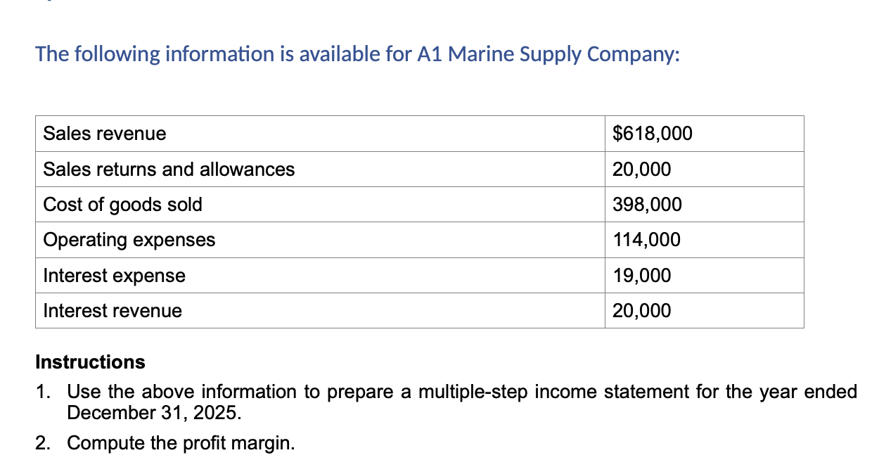 Solved The following information is available for A1 Marine