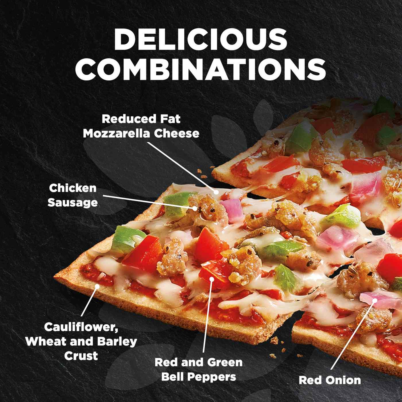 Save on Healthy Choice Flatbread Pizza BBQ Seasoned Chicken Cauliflower Healthy Choice Cauliflower Crust Flatbread Pizza When that pizza craving hits, reach for a healthy alternative. When you indulge in healthy choice turkey pepperoni flatbread pizza, know that every ingredient matters. Featuring a cauliflower pizza crust made with wheat and barley, tangy bbq sauce, diced chicken, red onion, bell pepper, and reduced fat mozzarella, this frozen bbq chicken pizza is sure to be a favorite. Healthy. Healthy Choice Cauliflower Crust Flatbread Pizza.