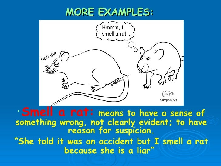 PPT Activity One “Rat” or “Mouse” Idioms Activity Two Role Plays Meaning To Smell A Rat To sense that someone has caused something wrong. To sense that someone has caused something wrong. To suspect that something is wrong; If you smell a rat, you begin to suspect or realize that something is wrong in a particular situation, for example that someone is trying to. Sense that something is not right. For example, when i didn't hear. Meaning To Smell A Rat.