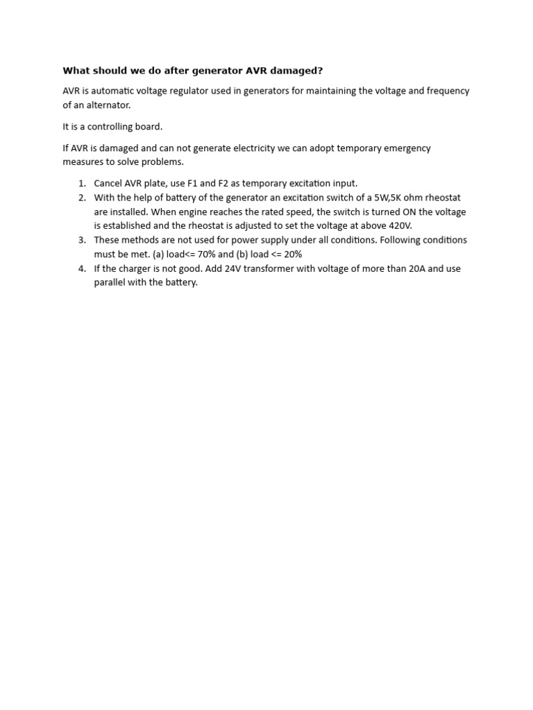 What Should We Do After Generator AVR Damaged PDF