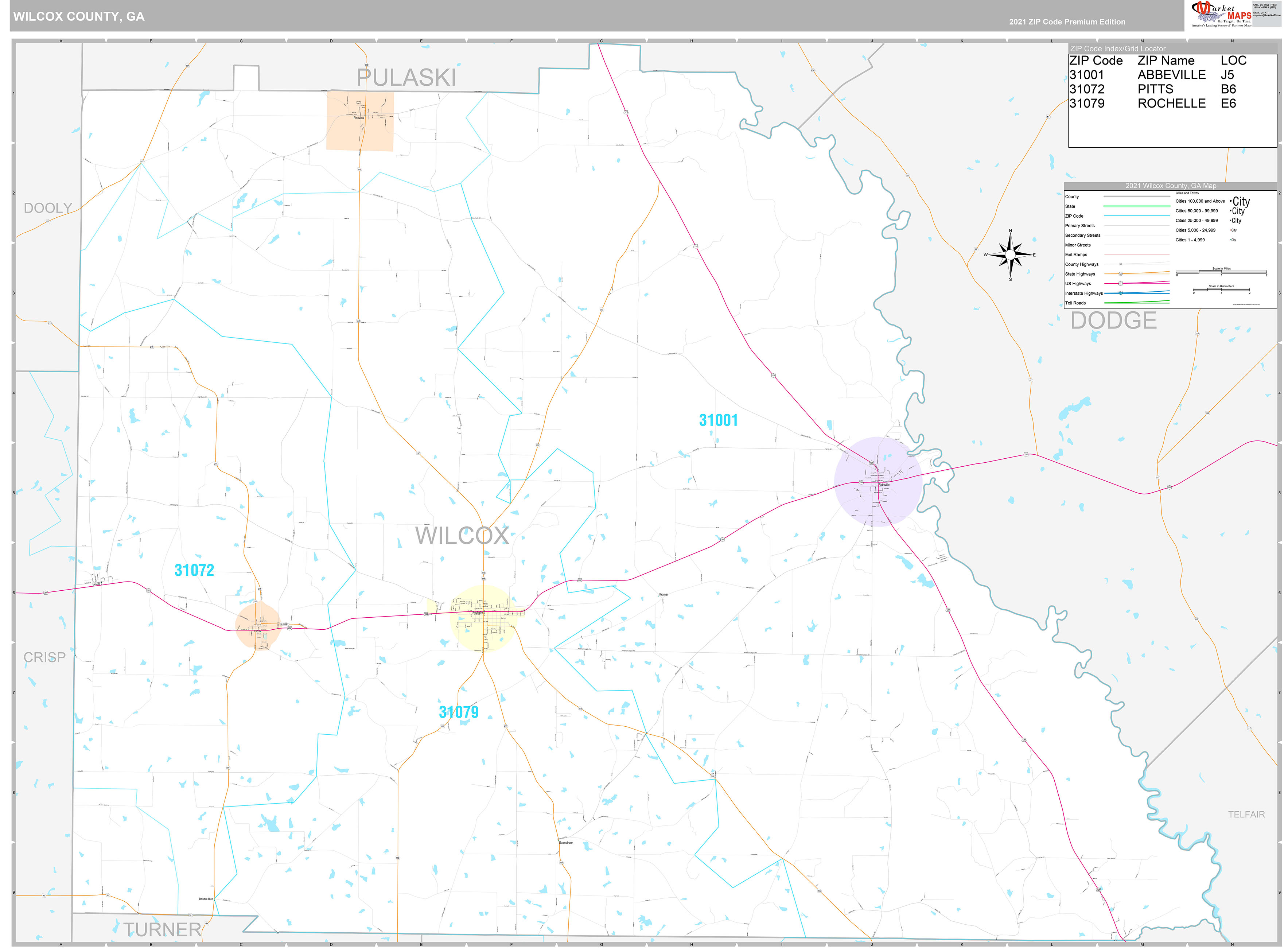 Wilcox County, GA Wall Map Premium Style by MarketMAPS